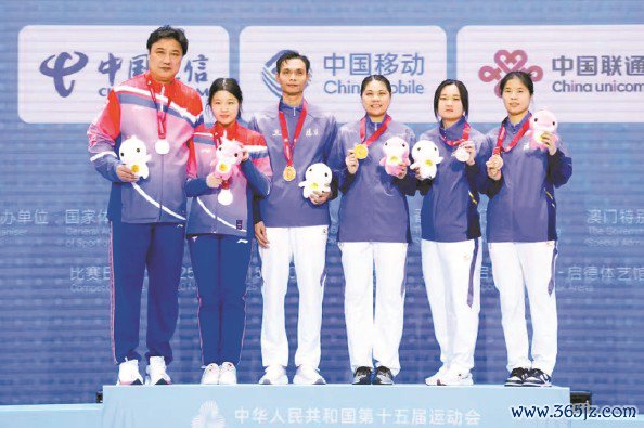陈飙(左一)和王一然(左二)在全运会领奖台上